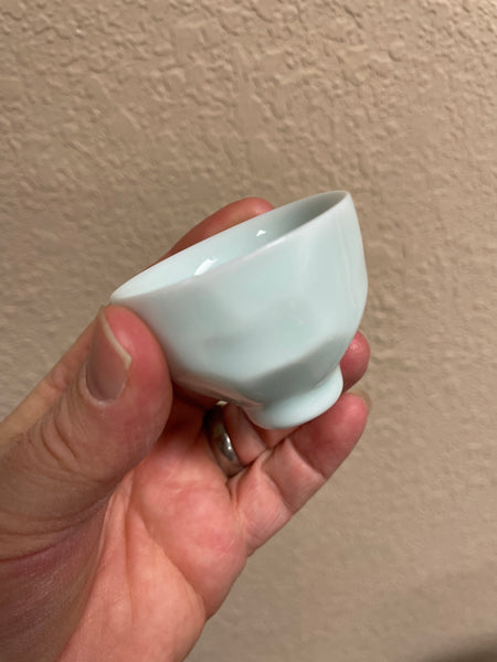 Obscure celadon teacup from Dehua, measures 25mL (30ml to rim)